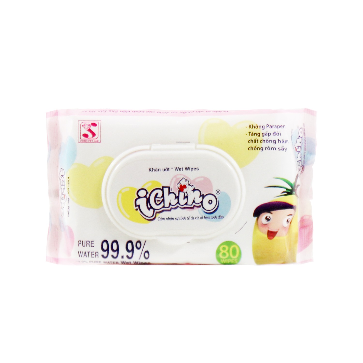 Khăn ướt không mùi Ichino 80 tờ - màu Hồng - tiện lợi, an toàn cho da